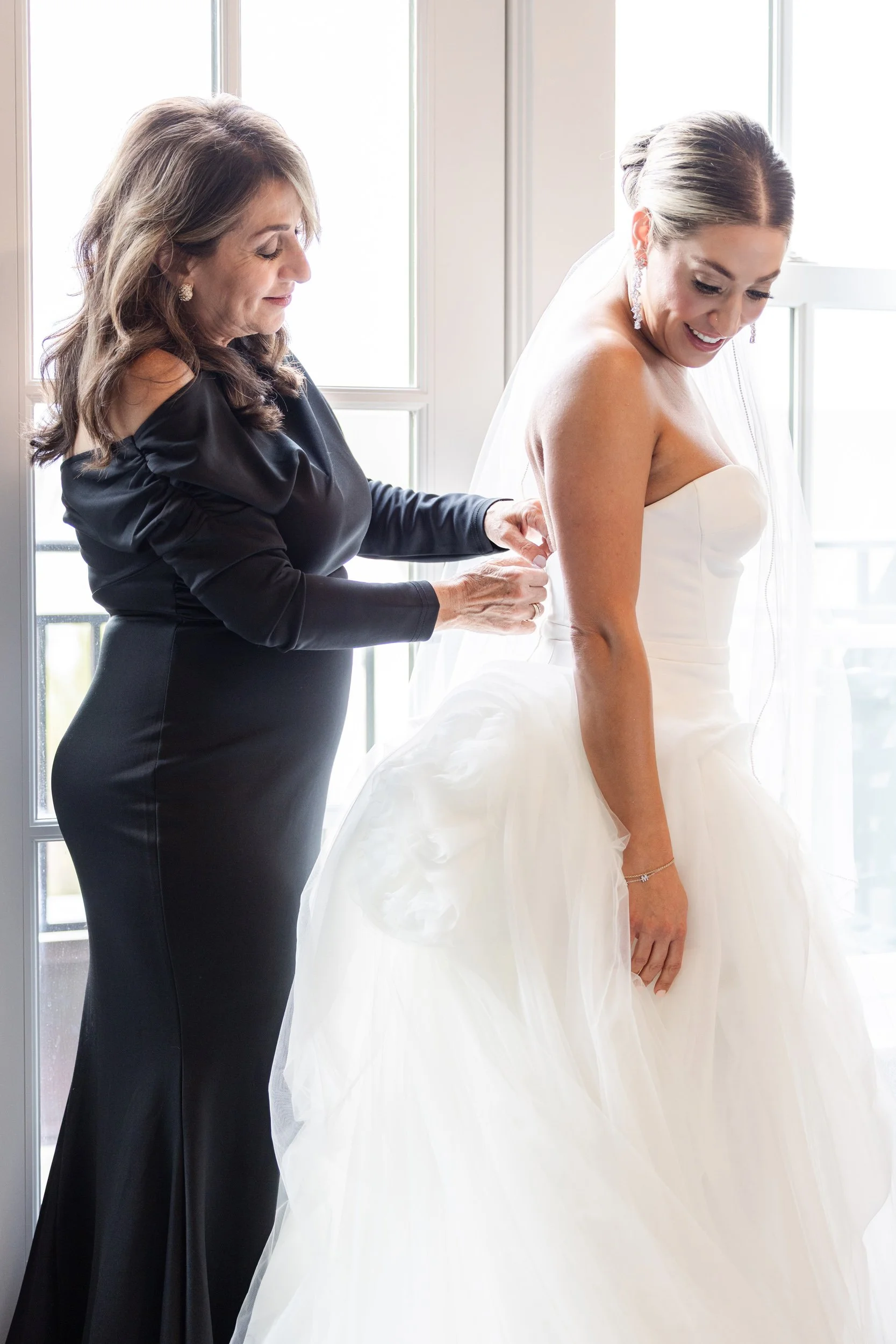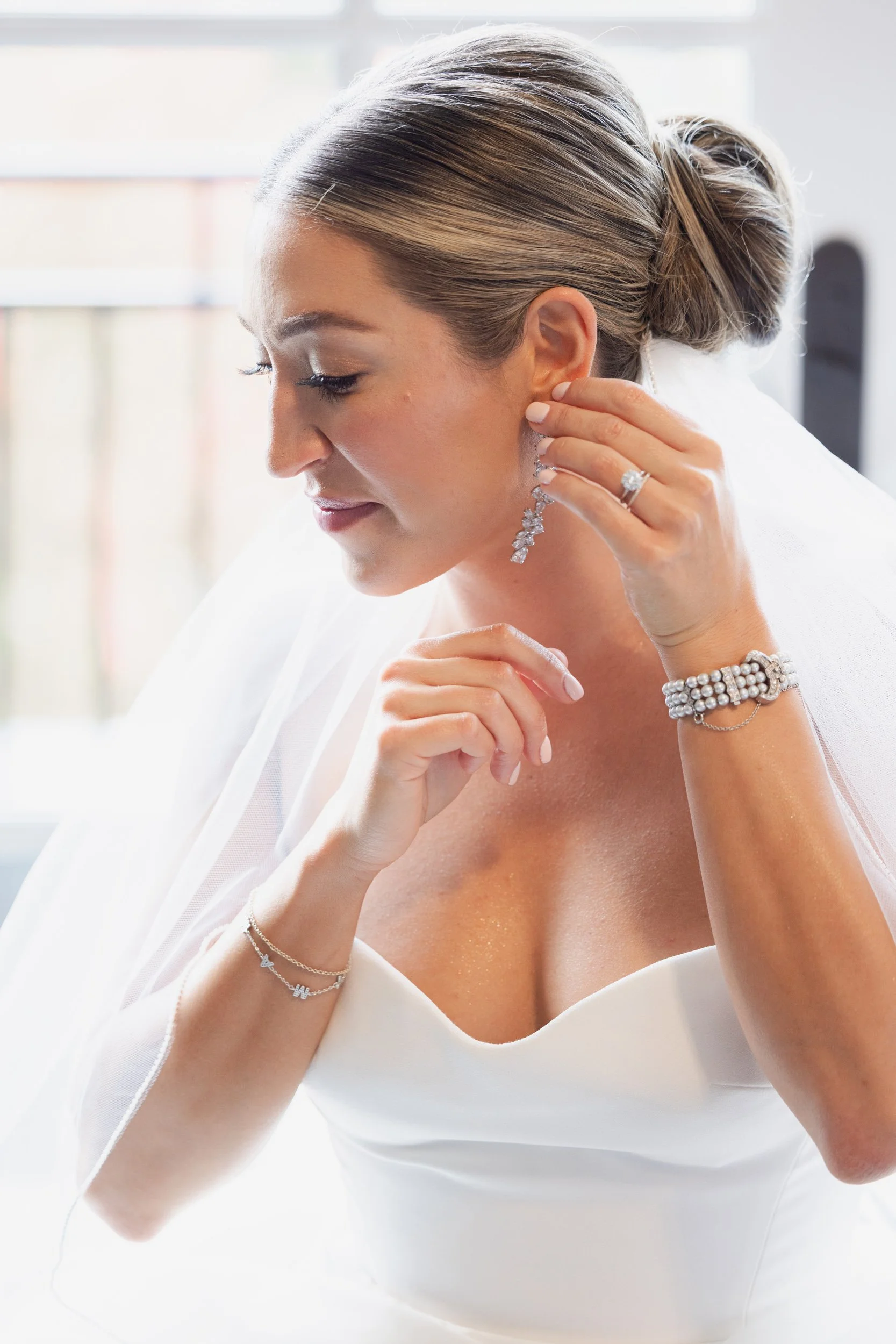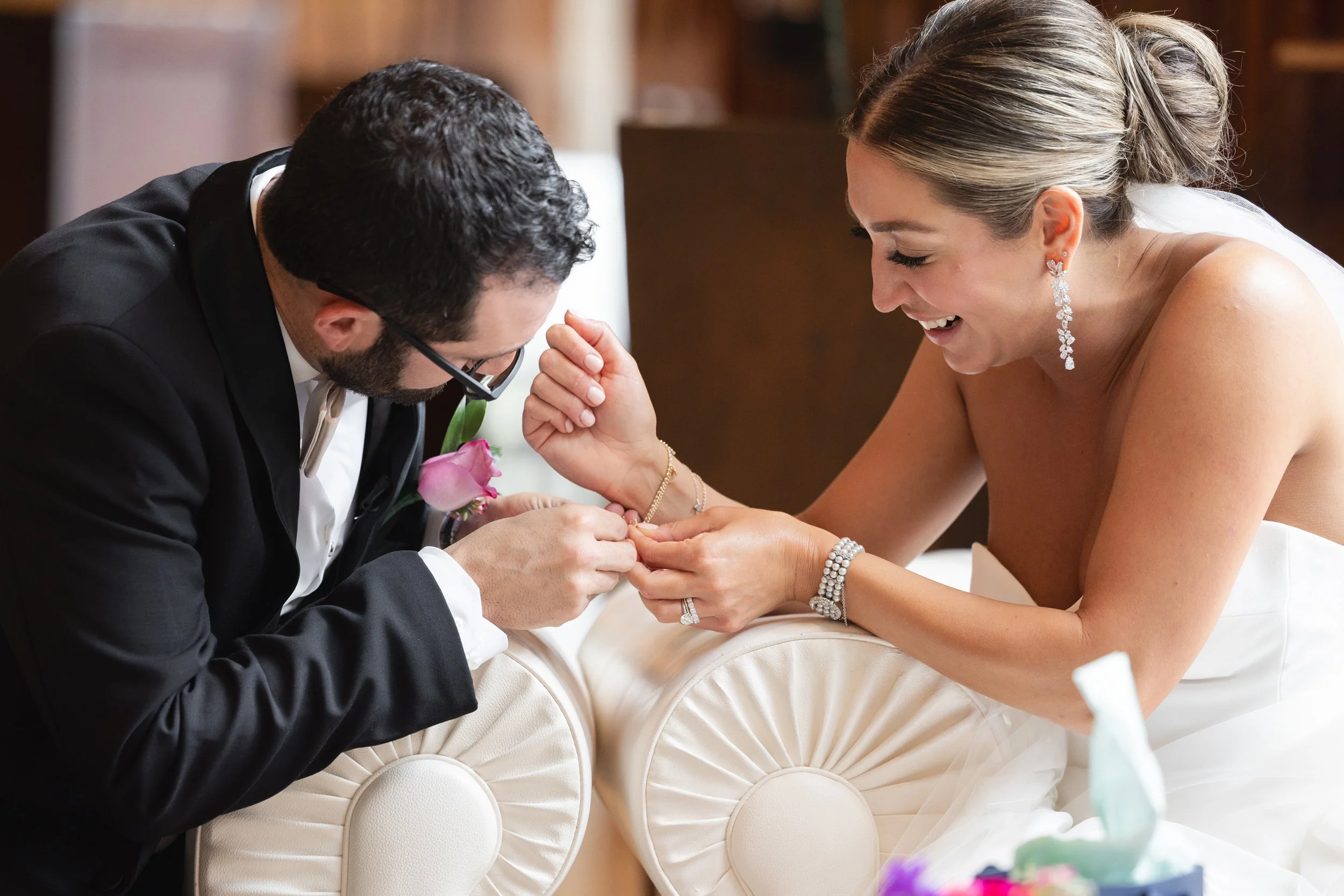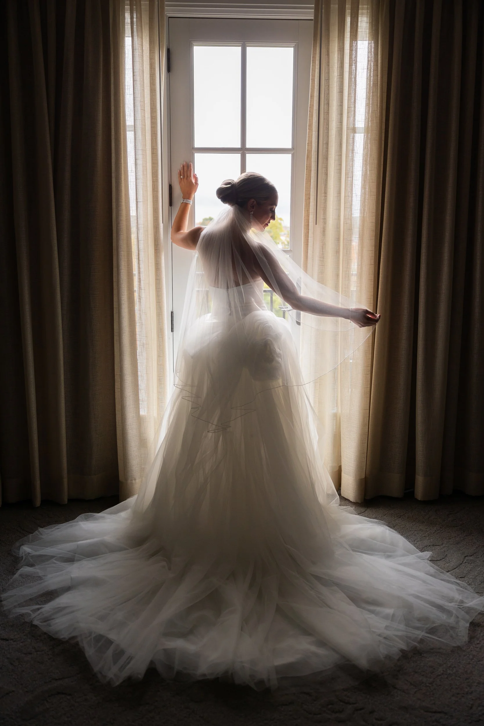 The wedding day began inside the hotel’s suites, where soft natural light and neutral tones created the perfect backdrop for getting-ready photos.