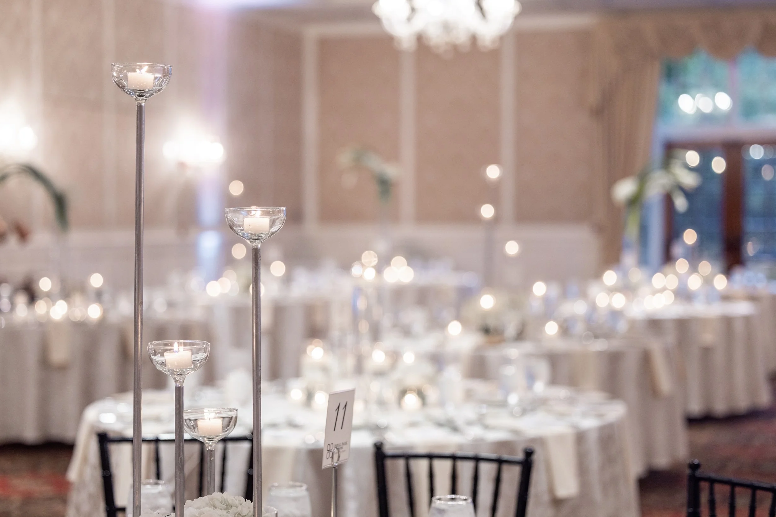 Elegant ballroom spaces with chandeliers and classic detailing